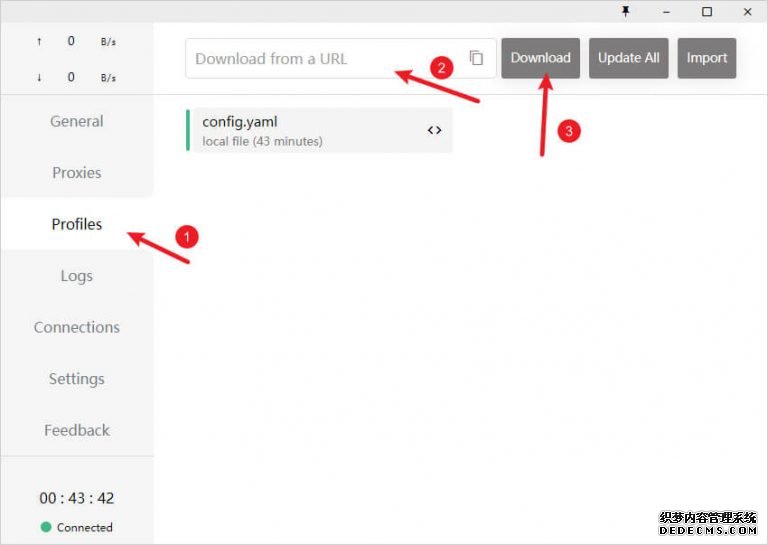 有时候不能正常上网时,可以点击界面左侧菜单 Profiles,点击 Update All 即可更新所有配置文件,如下图所示。